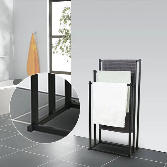 Freistehender Handtuchhalter aus Metall – Badetuchständer mit 3 Stangen, schwarz matt