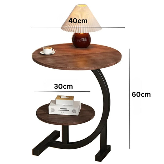 Moderner runder Couchtisch – Doppelstöckiger Sofa-Beistelltisch mit Stauraum, 60 cm hoch